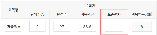 •     [표준편차] 점수가 없으므로 해당과목 입력 제외_성적반영안됨